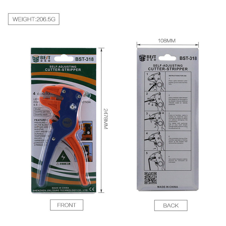 سیم لخت کن بست مدل BST-318 ابزاری بسیار ضروری برای سیم کشی ساختمان و یا برای انجام کارهای تعمیراتی برق و یا تولیدی های لوازم و دستگاههای الکتریکی و الکترونیکی است.برای برداشتن روکش سیم در این نوع سیم لخت کن ، نیازی به تنظیم نیست و دستگاه بطور اتوماتیک و متناسب با ضخامت کابل یا سیم ، رویه آن را با ظرافت و دقت ، خارج می کند و کاربر تنها باید دو قسمت متحرک دستگاه را به هم نزدیک کند .