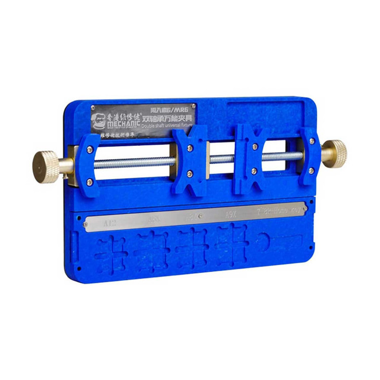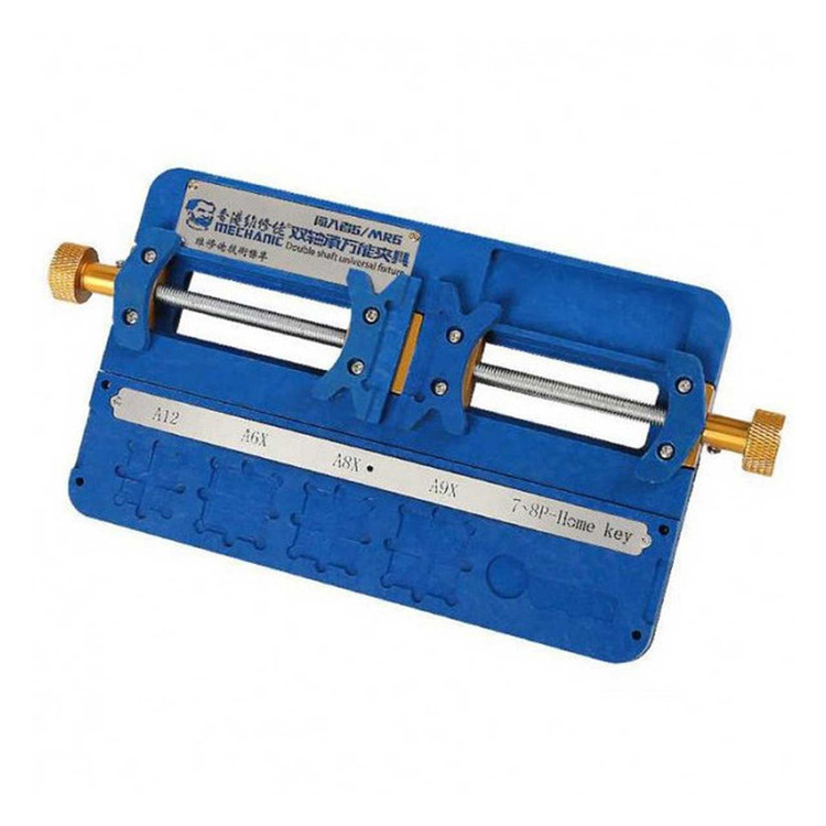 شرکت مکانیک با طراحی گیره های کاربردی نیاز تمامی کاربران را بر طرف نموده است گیره برد مکانیک ابزاریست بسیار کاربردی برای تعمیرات موبایل که هر تعمیر کار به ان نیاز دارد یکی از ویژگی های منحصر بفرد گیره برد مکانیک قابلیت کار بر روی دو برد به صورت همزمان میباشد گیره برد تعمیرات موبایل مخصوص کار بر روی آی سی هارد و CPU گیره برد MECHANIC MR6 ساخته شده از استیل ضد زنگ با مقاومت بسیار بالا میباشد به وسیله این گیره برد الکترونیکی میتوان تعمیرات خود را بر روی انواع برد و ای سی ها به راحتی انجام داد