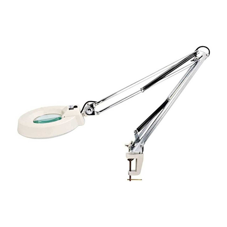 چراغ ذره بین جهت استفاده در کلینیک های پوست، مو، زیبایی، برای نقشه کشی ساختمانی ، تعمیرات الکترونیک و ... کاربرد دارد با گیره ای که در قسمت پایینی بدنه است به آسانی بر روی میز و جاهای قابل اتصال نصب می شود. ذره بین YX-168 دارای عدسی شیشه ای با قطر 12 سانتی متر و لامپ مهتابی است و همچنین بازوی ذره بین فلزی بلند است که قابلیت مانور بهتر و راحت تر روی میز کار را برای شما فراهم میکند.