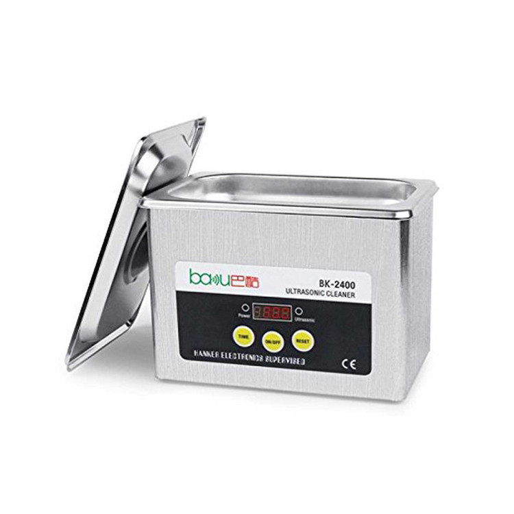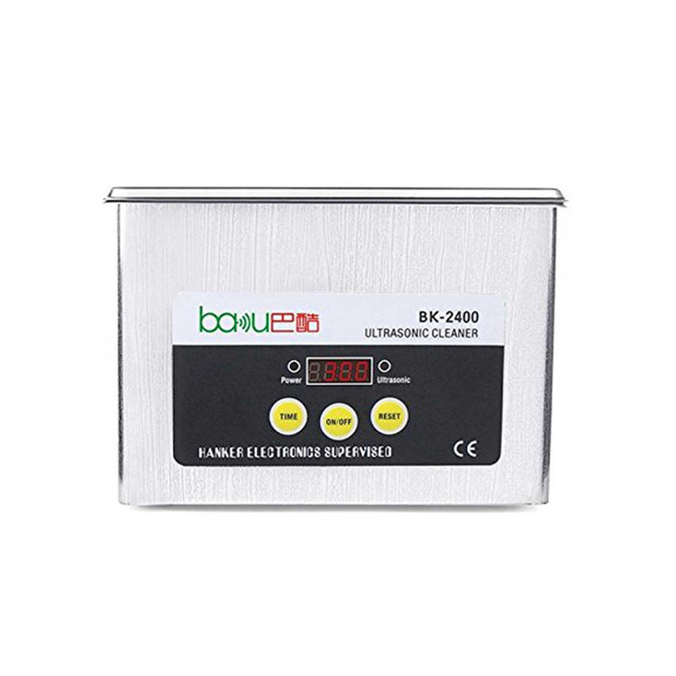 ابعاد مخزن حمام التراسونیک باکو BK-2400 است طول 15.5 عرض 8.8 عمق 6.5 سانتی متر و حجم 0.8 لیتر می باشد دستگاه حمام التراسونیک ابزاری کاربردی برای شستشوی برد موبایل و لوازمی نظیر قطعات الکترونیکی، ساعت، حلقه فلزی، گردنبند، سکه، دندان مصنوعی و قطعاتی است که شستشوی آنها نیازمند دقت بالا و دسترسی دشوار است. التراسونیک باکو Bk-2400 یک دستگاه قدرتمند با مصرف 35 وات میباشد. التراسونیک باکو دارای بدنهای فلزی از جنس استیل میباشد که مقاومت دستگاه را در برابر شویندهها افزایش میدهد.