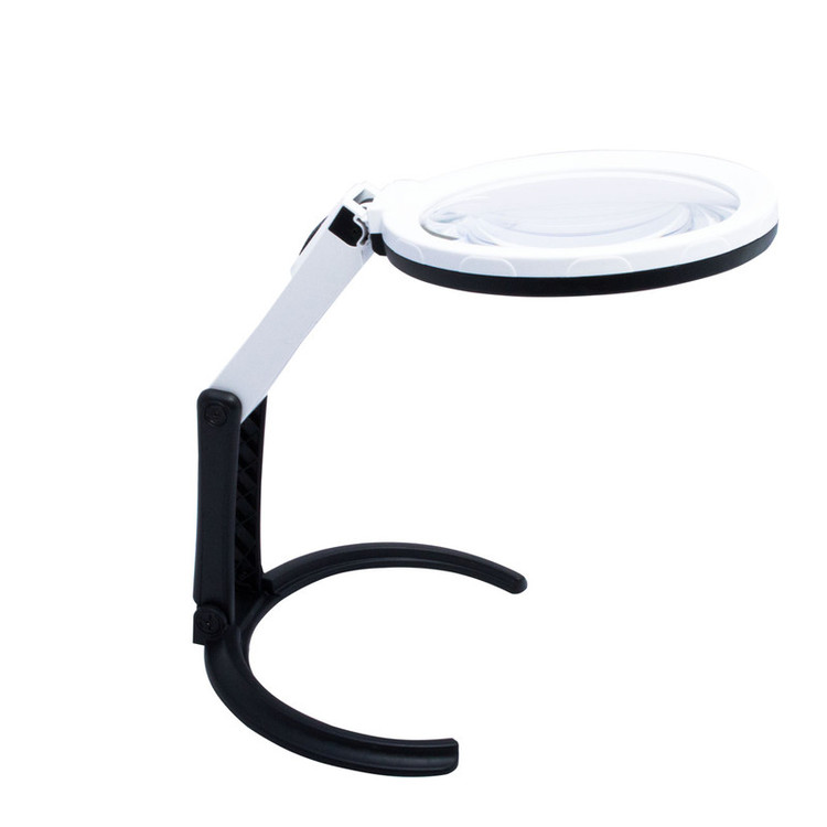 ذره بین پایه دار چراغدار دو منظوره دستی و رومیزی دارای 10 عدد لامپ LED به همراه آداپتور مناسب برا ی ستفاده پزشکان و تکنسین ها لنز مرکزی: 1.8×138 میلی متر لنز کمکی: 5×25 میلی متر