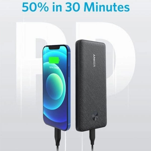 پاور بانک انکر مدل A1248 POWERCORE III ظرفیت 10000 میلی آمپر ساعت از درگاه ورودی پورت Type-C برای شارژ برخورداره و از سه عدد درگاه خروجی Type-C و USB بهرهمند شده. شدت جریان و ولتاژ ورودی این پاور بانک معادل 12 ولت/1.5 آمپر، 9 ولت/2 آمپر، 5 ولت/3 آمپر و شدت جریان و ولتاژ خروجی اون معادل 4.5 ولت/ 5 آمپر، 5 ولت/3.6 آمپر، 5 ولت/ 4.5 آمپر، 9 ولت/2.22 آمپر، ۵ ولت/3 آمپر هستش. این پاوربانک با بهرهمندی از تکنولوژیهای Power Delivery و Quick Charge میتونه گجتهای شما رو خیلی امن و سریع شارژ کنه و خودش هم قابلیت شارژ شدن سریع رو داره. این پاور بانک ظرفیتی 10000 میلیآمپری داره و میتونه یک گوشی آیفون رو توی 30 دقیقه تا 50 درصد شارژ کنه.