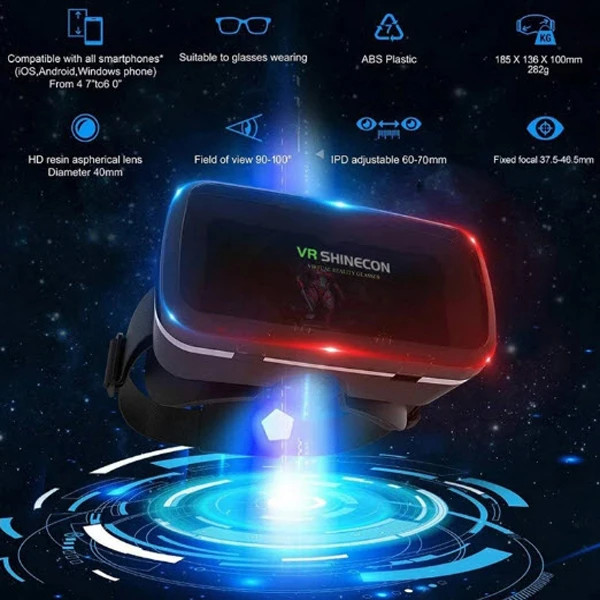 کمپانی SHINECON جزو برندهای مطرح و خوش نام در زمینه ی تولد عینک های واقعین مجازیست ، که با بهره گیری از تکنولوژی روز و استفاده از متریال های بسیار با کیفیت ، تولیدات خود را توسعه داده و آنهارا حتی به آمریکا و اروپا نیز صادر می نماید. عینک واقعیت مجازی شاینکن G06A ، یکی از محصولات جدید این کمپانیست که توانسته با بهبود کیفیت لنز خود ، وضوح تصویر بسیار بالایی را برای کاربران فراهم آورد. جنس بدنه ی این مدل از پلاستیک بسیار با کیفیت ABS است تا طول عمر بیشتری داشته باشد و همچنین وزن کمتری داشته باشد تا استفاده ی از عینک را راحت تر و لذت بخش تر نماید(276 گرم).دور عینک که محل تماس آن با صورت است ، از یک چرم بسیار با کیفیت و لطیف استفاده شده است تا کمتریت فشار را به صورت وارد نماید و با استفاده طولانی ، کاربر را خسته نکند.بر روی این چرم ، منافذی موجود است تا از تعریق جلوگیری نماید. بندی که هدست را بر روی سر ثابت می کند ، بسیار با کیفیت است و از سه زاویه هدست را پشت سر فیکس می کند تا از تکان خوردن VR بر روی سر جلوگیری کند. لنزهای G06A بسیار با کیفیت تر از دیگر مدل ها ساخته شده است تا کیفیت HD را برای شما فراهم کند.لنزها از طریق دکمه های روی هدست قابلیت حرکت به عقب-جلو و چپ-راست را دارند تا کاملا متناسب با چشم های شما فیکس شوند و از خستگی چشم ها با استفاده ی طولانی مدت ، جلوگیری نماید. این لنزها طوری طراحی شده اند که حتی می توانید این هدست را به همراه عینک طبی نیز استفاده فرمایید. این هدست قابلیت سازگاری با تمامی مدل های گوشی اندرویدی و آیفون و ویندوز موبایل ها را دارد و قابلیت جایگیری موبایل های 4.7 تا 6.0 اینچی را دارد.
